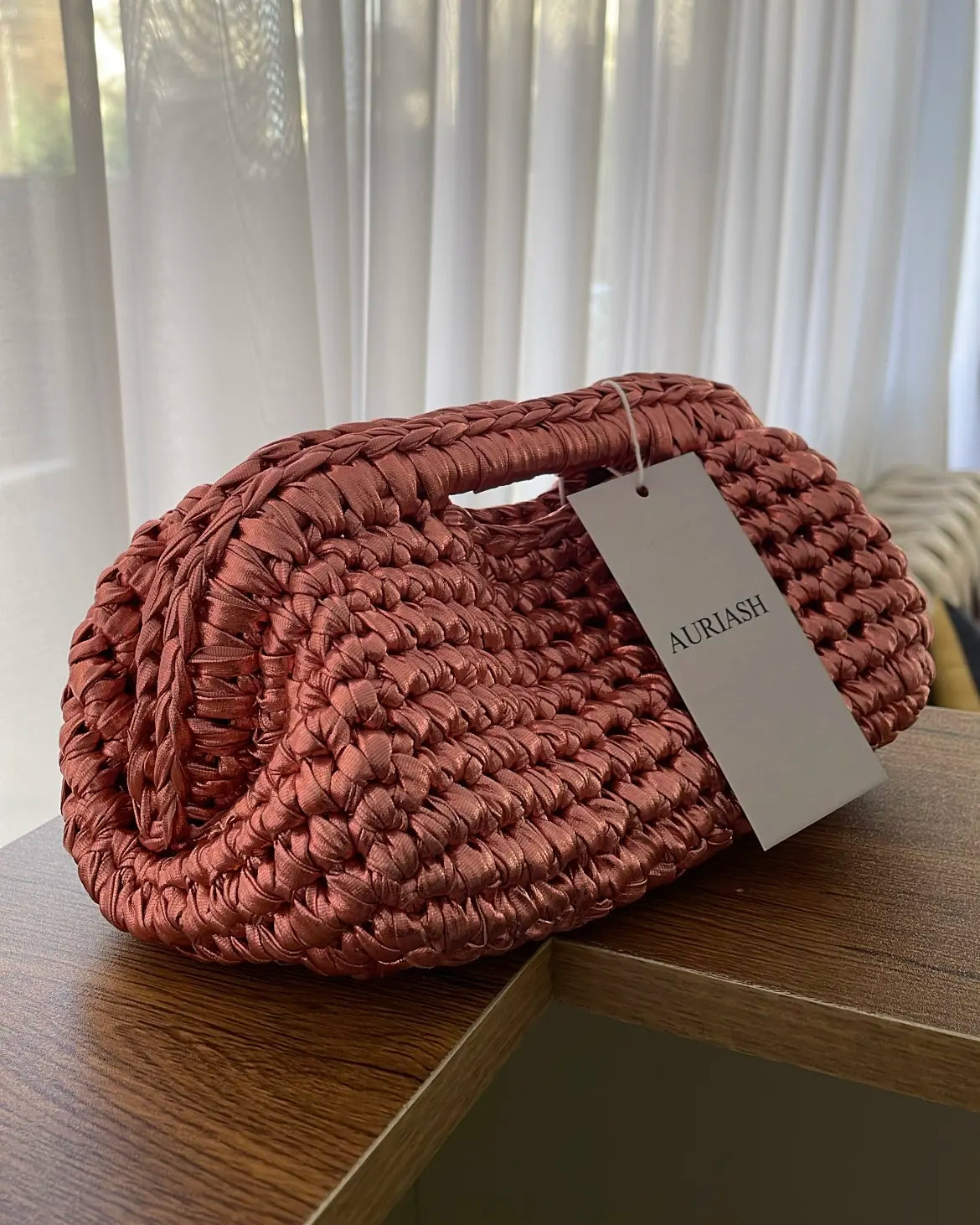 - Handcrafted crochet with a unique metallic finish